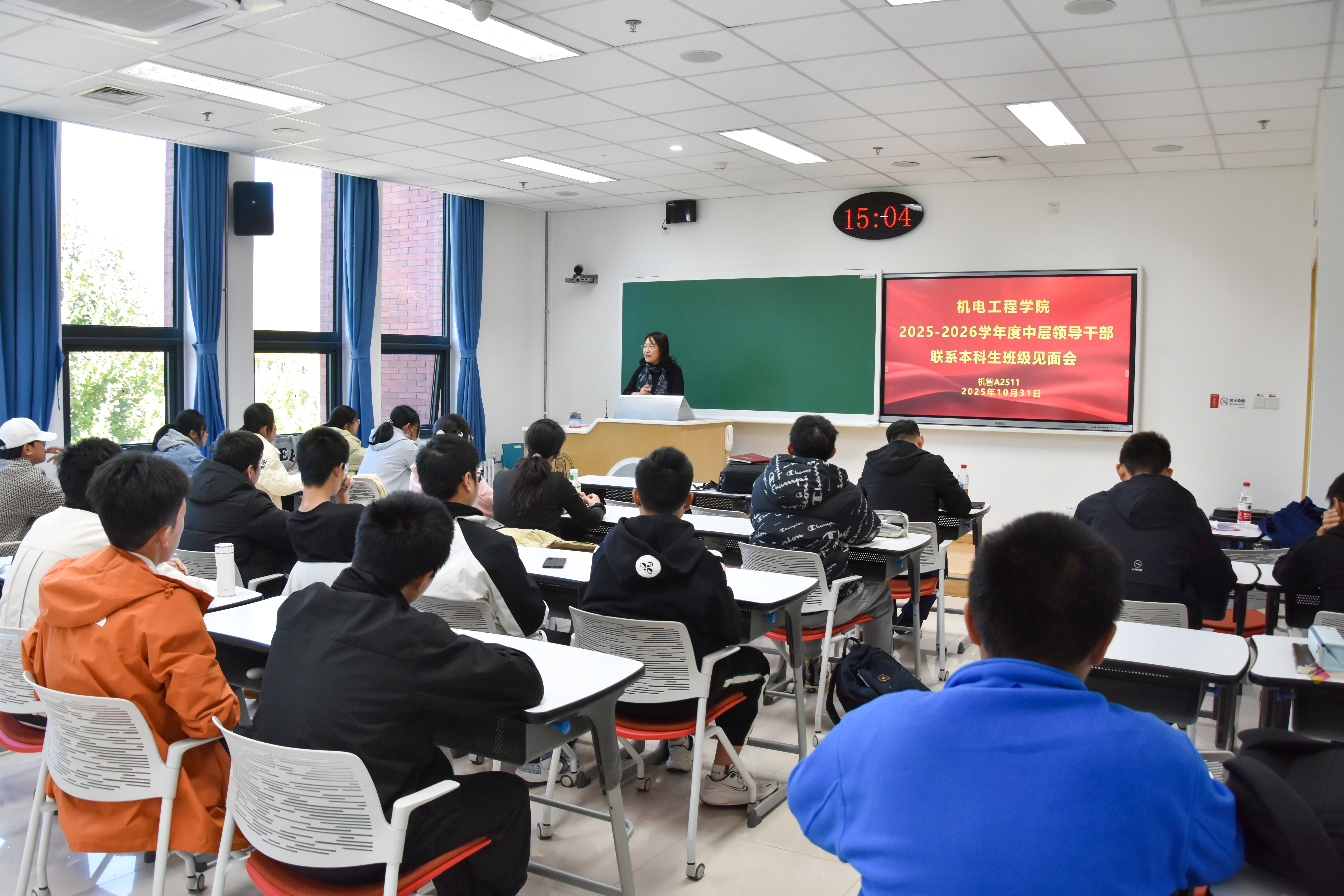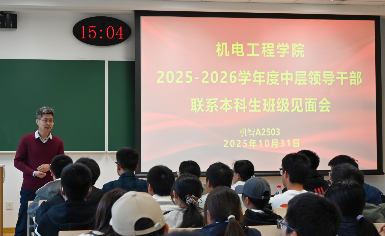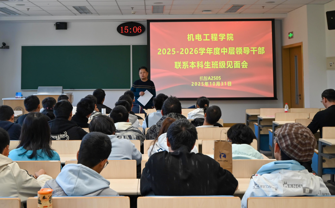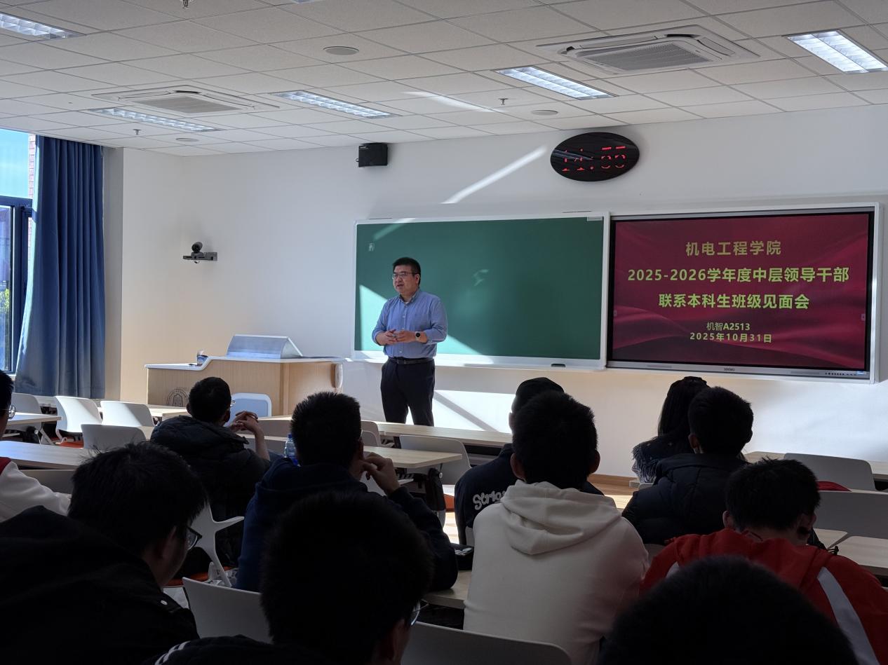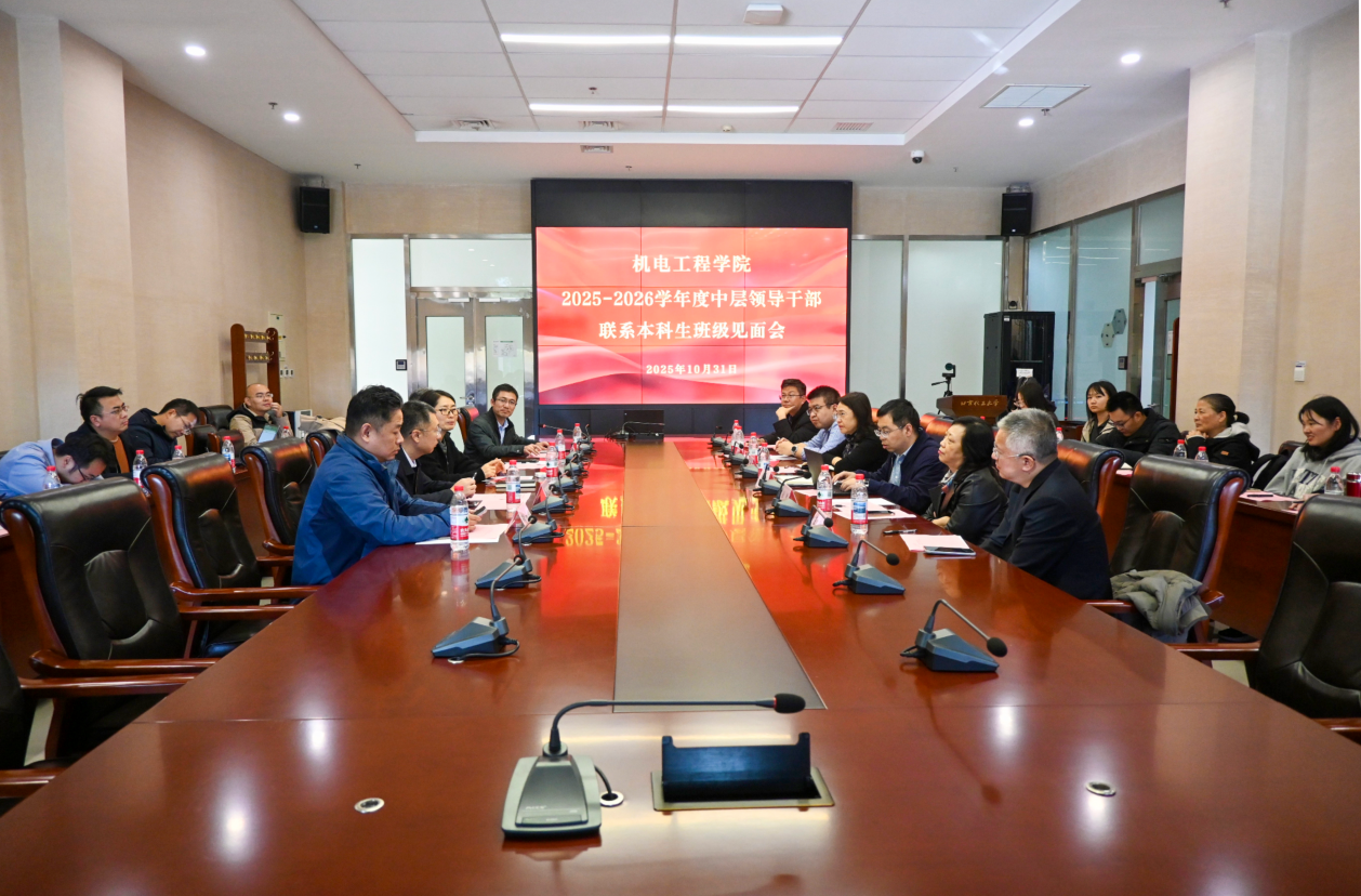 10月31日下午,机电工程学院组织开展2025级中层领导干部联系本科生班级见面会,联系学院25级新生班级的中层领导干部、新生班级辅导员及班主任参加见面会。