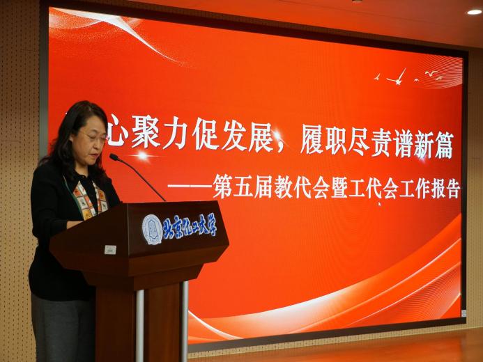 随后,学院分工会主席、副院长张静代表上一届委员会作题为《凝心聚力促发展,履职尽责谱新篇》的教代会、工代会工作报告。报告系统总结了过去五年工会在强化民主管理、维护教职工权益、繁荣校园文化等方面所做的工作,并汇报了工会经费收支情况。报告指出,新一届工会将继续围绕学院发展中心任务、服务大局,为学院跨越式发展凝聚广泛力量。