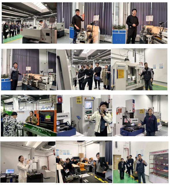 本次技能大赛紧扣“一专多能”主题,涵盖车工、数控车、五轴加工、注塑、线切割、三坐标测量等工程训练核心工种,共11位教师同台竞技。比赛以实操演示为主,选手们依次娴熟演示了各工种的标准操作流程、关键工艺技巧与专业设备运用能力。整个赛事组织严谨、节奏紧凑,充分展现了教师们扎实的操作功底、规范的工艺执行以及清晰的讲解表达能力。