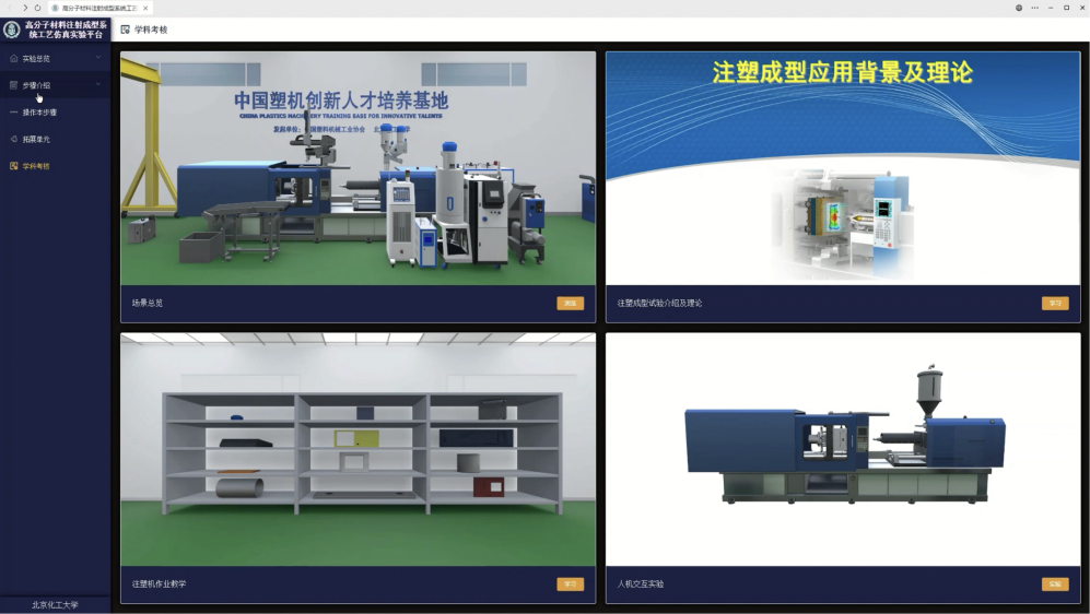 高分子材料注射成型系统虚拟仿真实验:作为学校“五位一体”实践课程体系的核心环节,课程始终以“培养学生解决复杂工程问题能力”为目标,近年通过“产学协同+科教融汇”双路径,交出亮眼答卷。以“中国塑机创新人才培养基地”为枢纽,联合中国塑机协会及海天塑机等22家龙头企业,建成全国首个塑机行业产教融合共同体。依托“金工+高工”虚实平台,将模内涂装等18项前沿技术转化为教学内容,打造“工业级实训基地+数字孪生平台+云端资源库”的复合模式,课程年均覆盖超3000人,“云实训+云展览”覆盖全国21.3万人次。