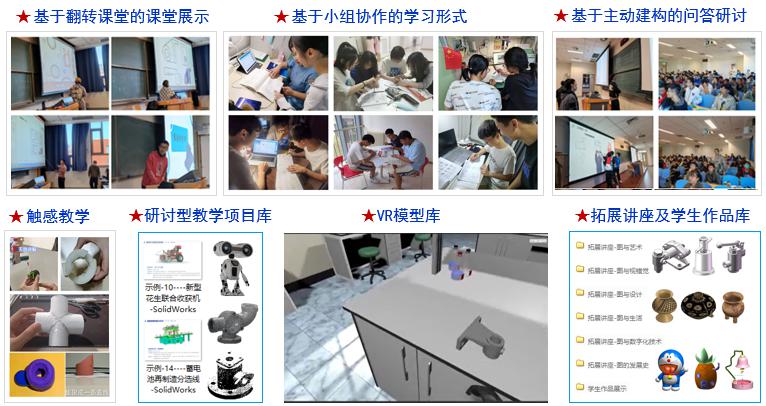 工程制图:以“混合创新、实践赋能”为核心理念,针对传统工程图学教育“重理论轻应用”的痛点,构建了“四位一体”改革路径:(1)课程思政浸润:深挖“大国工匠精神”、“科技报国情怀”等思政元素,创新“识概念-懂表达-育素养”思政体系,将思政案例融入教学模块体系,相关成果获北京市高校课程思政示范项目;(2)混合创新教学:将教学内容解构为“知识扩展、练习导向、学术对话、项目创新”四类,采用BOPPPS教学模式扩充实践内容,实现“教-学-练-创”深度融合;(3)项目驱动学习:引入航发叶轮设计、商代文物修复等实践项目,构建“赛-产-科-教”融合体系,推动学生从“被动学习”向“主动创新”转变;(4)资源平台赋能:打造包含微课视频、三维动画、VR模型库的数字化资源平台,依托SPOC、雨课堂等工具,实现线上线下全链条协同教学。