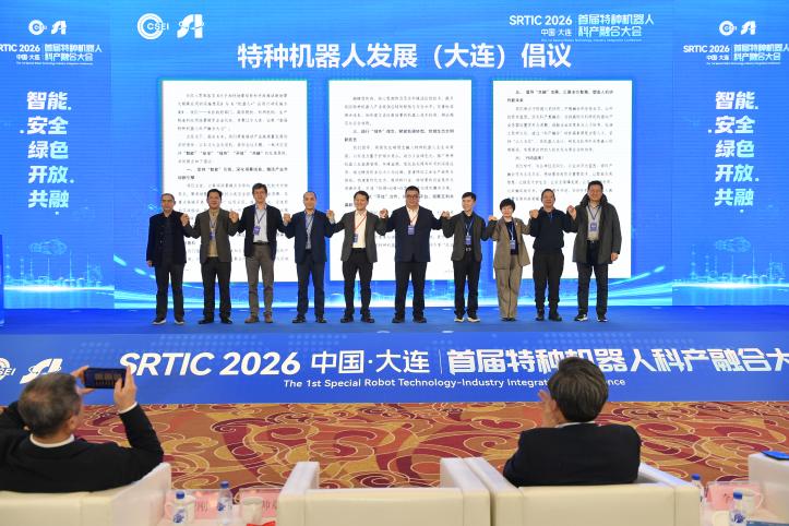 会议期间,我院教师积极参与多项重要活动,展现了学院在该领域的专业影响力与协同发展意愿。唐刚、谭晶、胡和敏三位老师正式加入大会发起成立的“特种机器人百人会”,助力构建“政产学研金服用”一体化创新生态,为特种机器人技术转化、场景落地与协同发展贡献智慧。谭晶教授作为代表与相关领导及专家共同发布了《特种机器人发展(大连)倡议》,提出“智能、安全、绿色、开放、共融”五大发展倡议,引导行业以高水平创新实现高质量发展。胡和敏老师作了题为《特种机器人关节散热的典型难题——高功率密度与高动态耦合效应剖析》的学术报告,分享了学院在高功率密度关节热管理技术方面的研究成果与实践应用,受到与会专家的广泛关注与讨论。