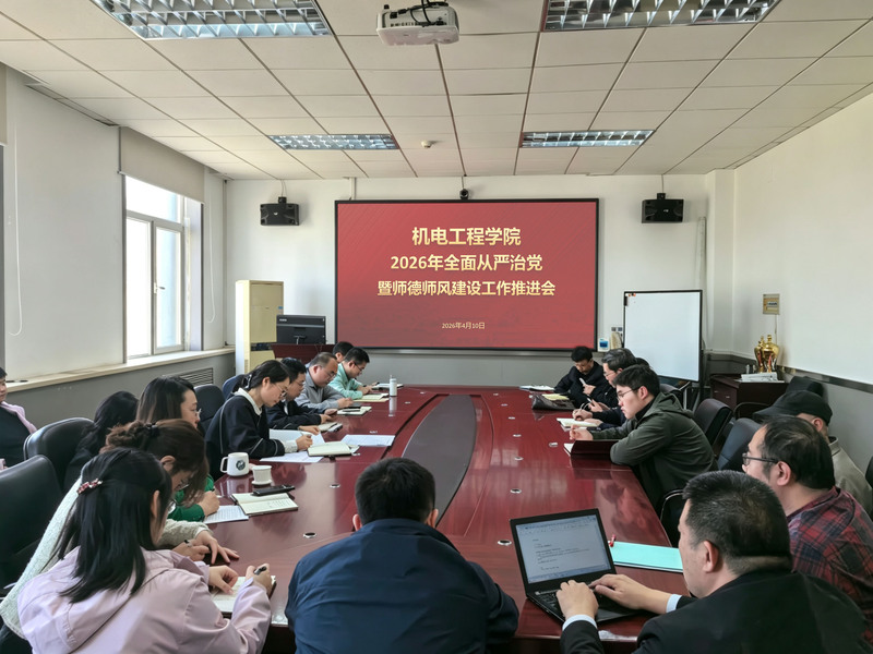 为深入推进全面从严治党向纵深发展,持续强化纪律规矩意识,筑牢师德师风与安全保密防线,机电工程学院于4月10日下午在机械楼408组织召开2026年全面从严治党暨强化师德师风建设工作推进会。于洪杰主持会议。