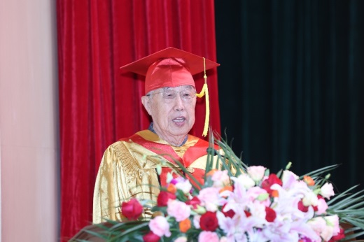 Professor Gao Jinji, academician of the Chinese Academy of Engineering, spoke as a representative of the master's student supervisors. In his speech, he encouraged the students to aspire to contribute to the nation and hone their skills through practice. He emphasized the importance of maintaining rigorous self-discipline, independent thinking, and teamwork, while also prioritizing physical and mental health. He urged them to contribute their youth to the nation's development and the great cause of national rejuvenation through concrete actions. Finally, Academician Gao recited a self-composed poem for the graduates, which was met with an enthusiastic response.
