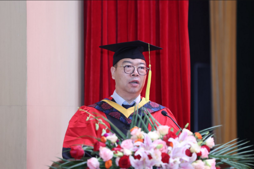 Wang Weimin, Dean of the School and Director of the Academic Degree Evaluation Committee, delivered a speech to the master's graduates. On behalf of all faculty and students, he extended warm congratulations to the 2025 graduating class of master's students and expressed high respect and heartfelt gratitude to the mentors and parents who diligently nurtured the graduates.