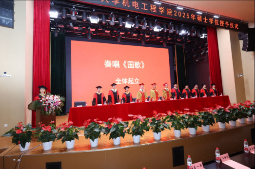 On the morning of June 20, the 2025 Master's Degree Conferral Ceremony of the School of Mechanical and Electrical Engineering was grandly held in the Science Auditorium of the East Campus. Attendees included Gao Jinji, academician of the Chinese Academy of Engineering; Ren Zhongqi, Member of the Standing Committee of the University Party Committee and Vice President; Liang Yongtu, Member of the Standing Committee of the University Party Committee and Vice President; and Wang Weimin, Dean of the School of Mechanical and Electrical Engineering. The ceremony was presided over by Yu Hongjie, Secretary of the Party Committee of the School.
