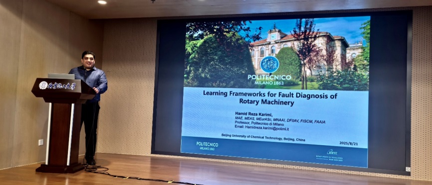 On August 21, 2025, Professor Wang Weimin, Dean of the School of Mechanical and Electrical Engineering at Beijing University of Chemical Technology, invited Professor Hamid Reza Karimi from Politecnico di Milano, Academician of the European Academy of Sciences, for a three-day academic exchange event. The academic exchange meeting was attended by Academician Gao Jinji of the Chinese Academy of Engineering and Professor at Beijing University of Chemical Technology, along with the entire leadership team of the School of Mechanical and Electrical Engineering. The meeting was chaired by Professor Wang Weimin.