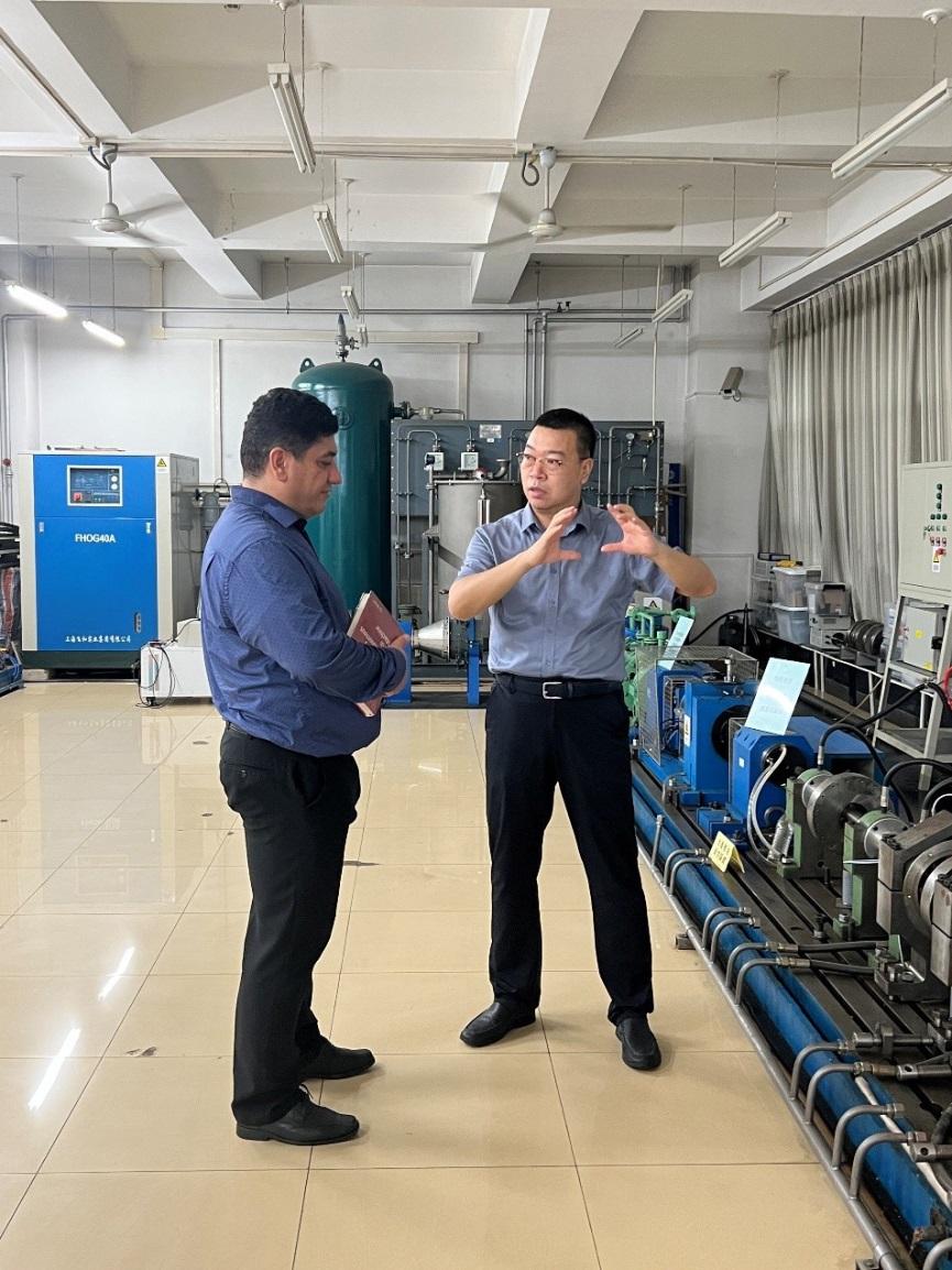 Following the academic session, Dean Wang Weimin introduced Professor Hamid to the School's development overview and main research directions. In-depth discussions were held on establishing joint laboratories, co-hosting international conferences, and talent cultivation. Dean Wang also accompanied Academician Hamid on a visit to the National Key Laboratory of High-end Compressor and System Technology, providing a comprehensive introduction to the laboratory's development history, research features, functional characteristics, and practical engineering applications.